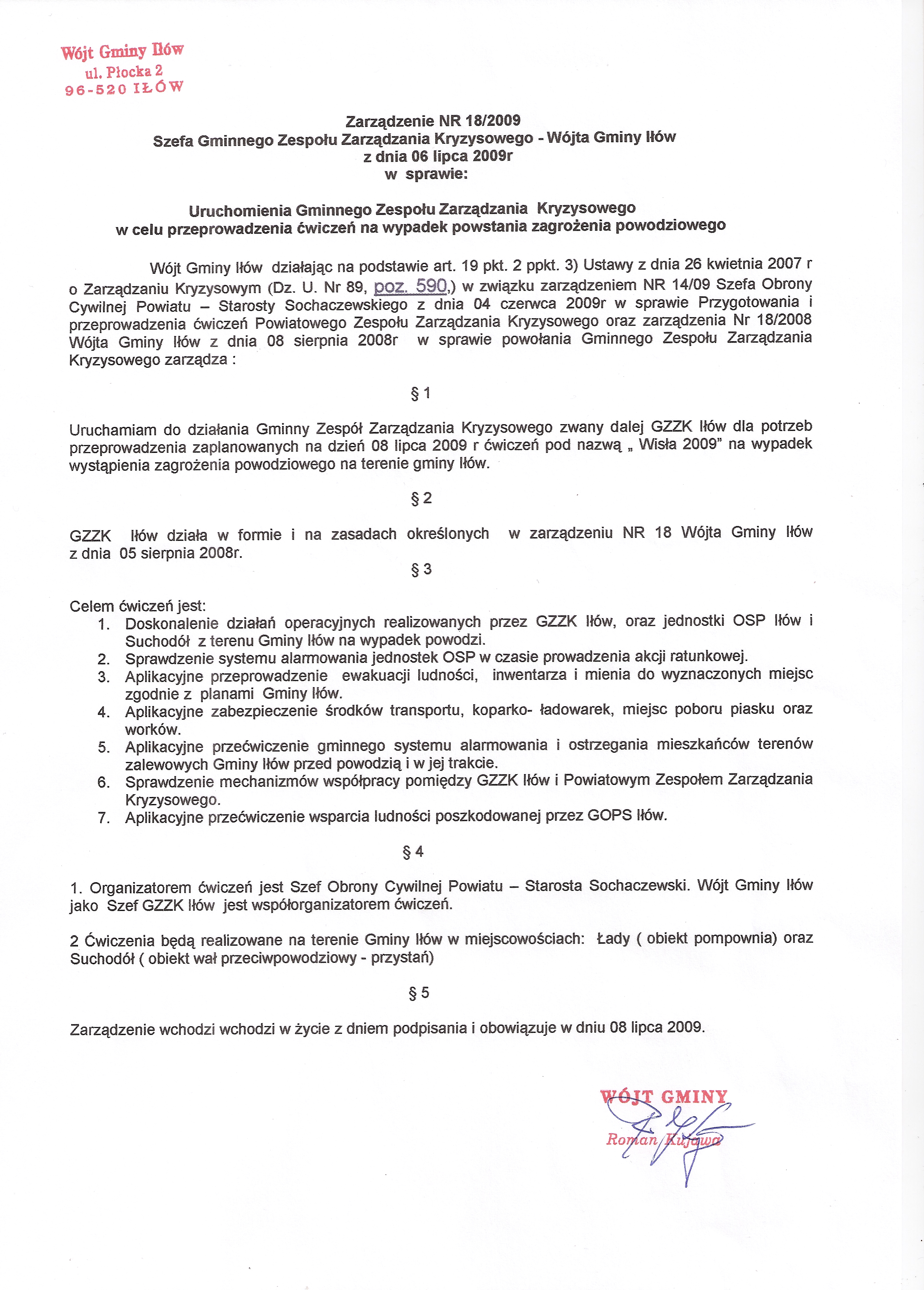 Zarządzenie 18/2009 z dnia 06.07.2009r. w spr.uruchomienia GZZK